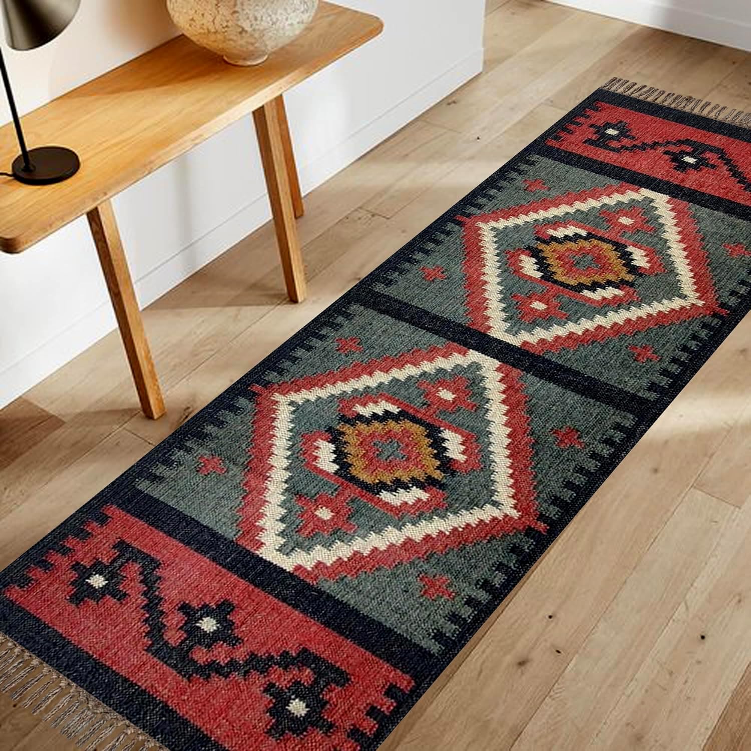 Crafted with a blend of natural wool and jute, our Kilim rugs offer a perfect balance of softness, strength, and rustic charm.